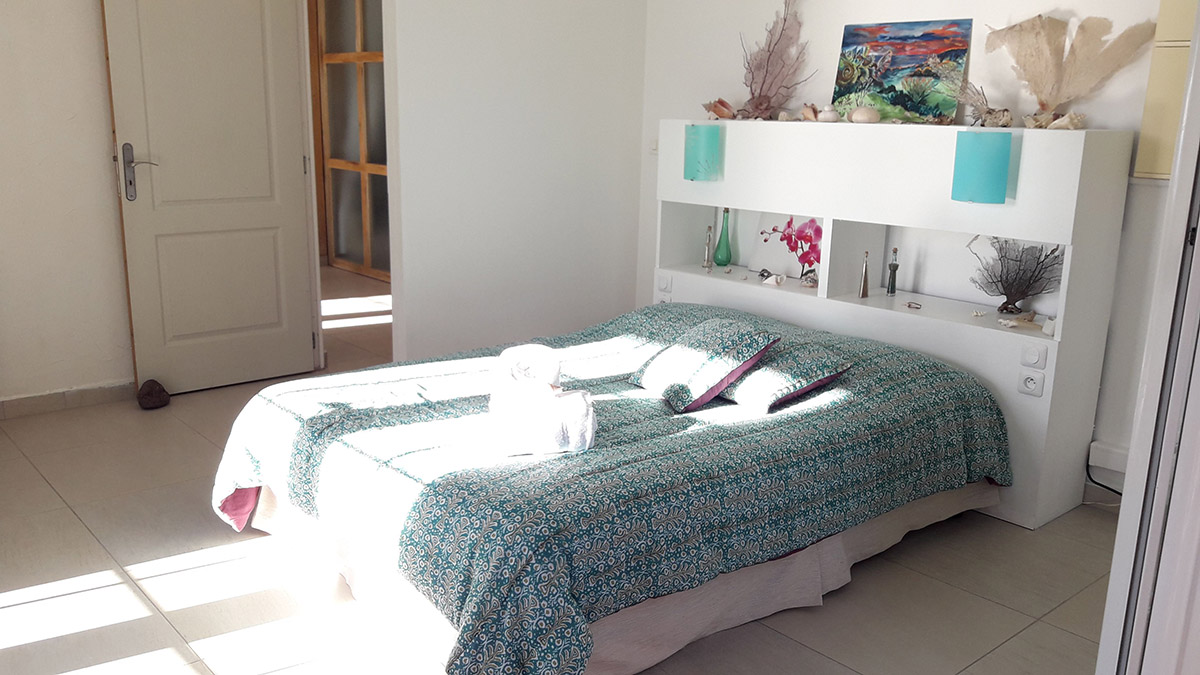 Gîte accueillant 6 personnes, niché au coeur d'un domaine agricole avec vue mer et montagne.