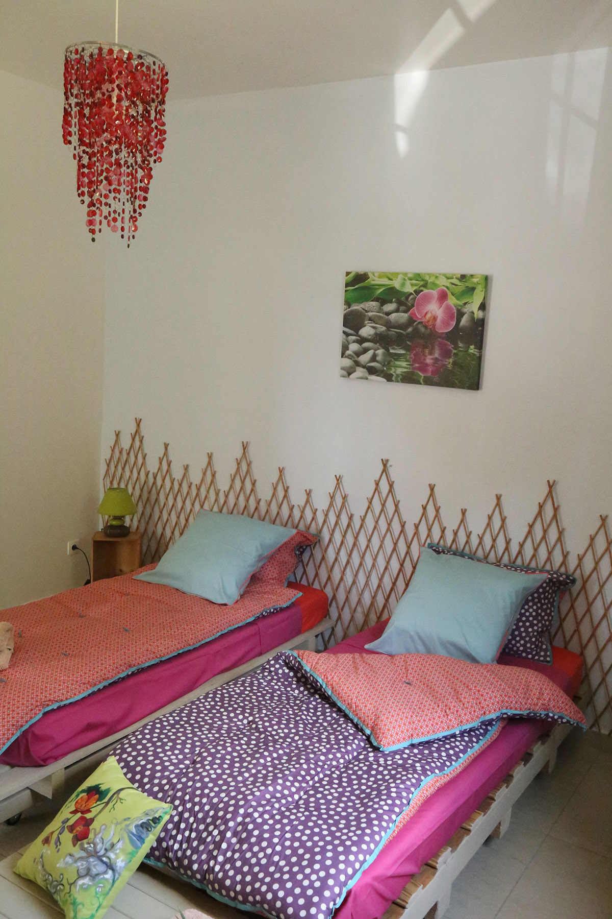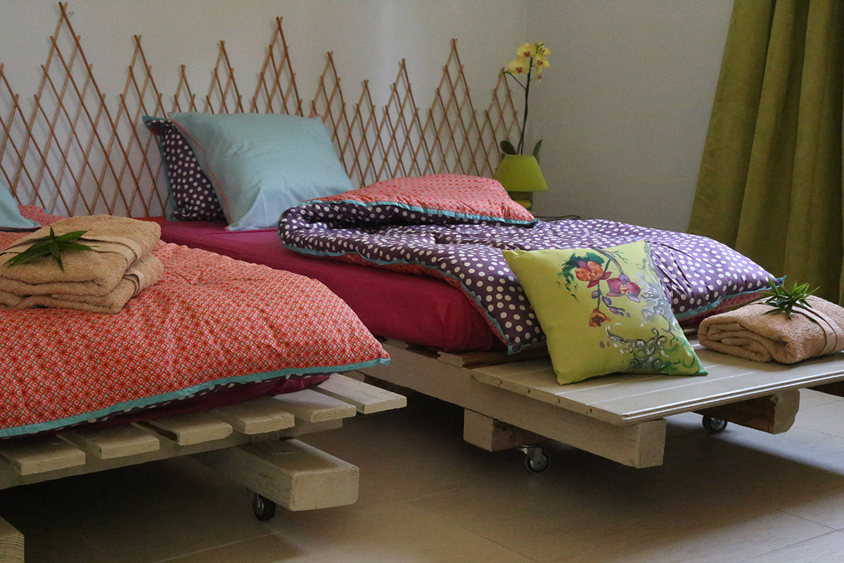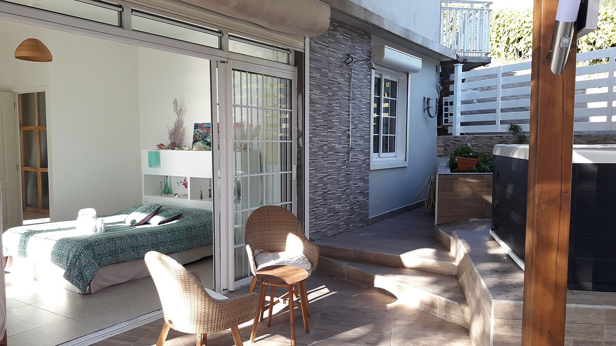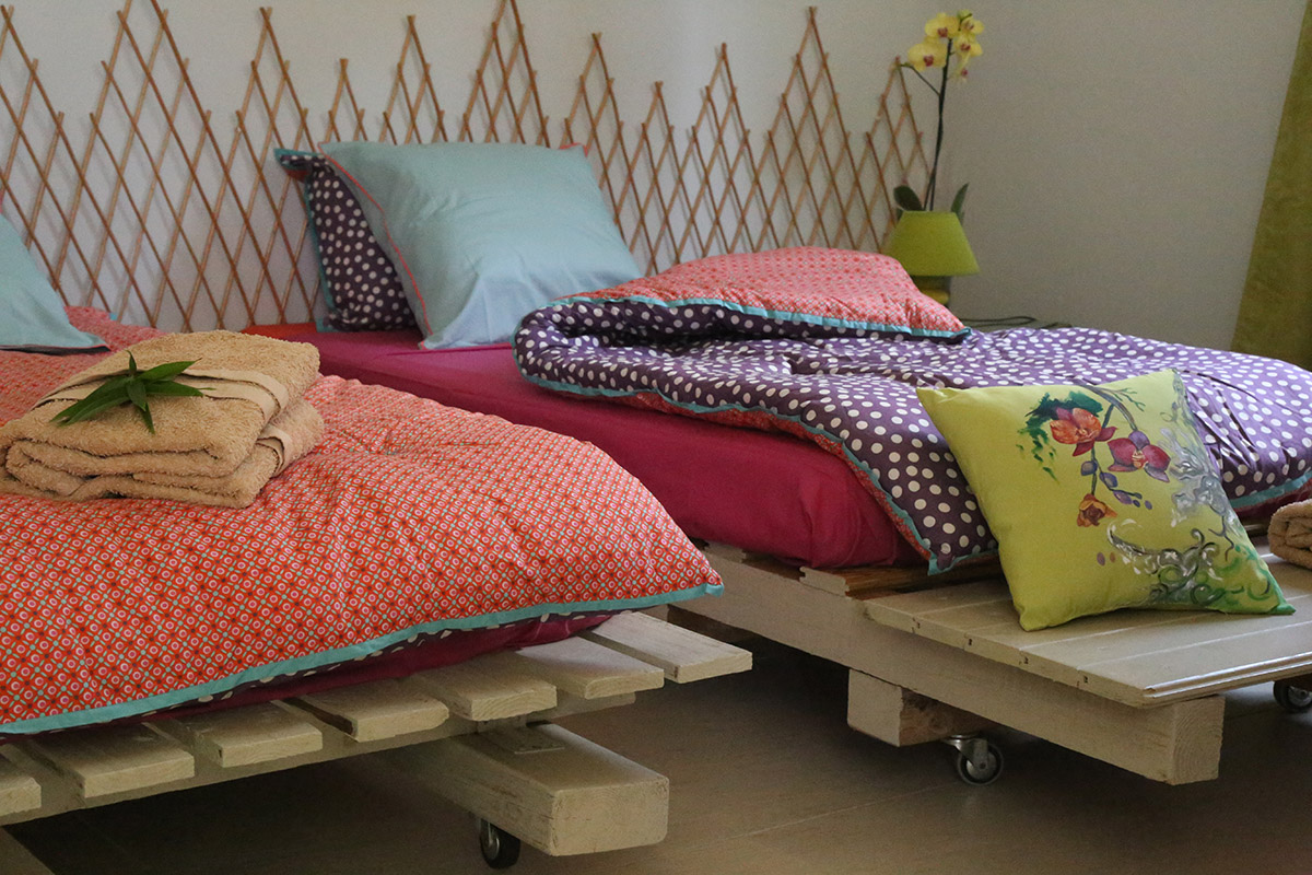 Notre gîte peut accueillir jusqu'à 8 personnes. Il est constitué de 3 chambres, d'une salle de bain et d'un spa extérieur.