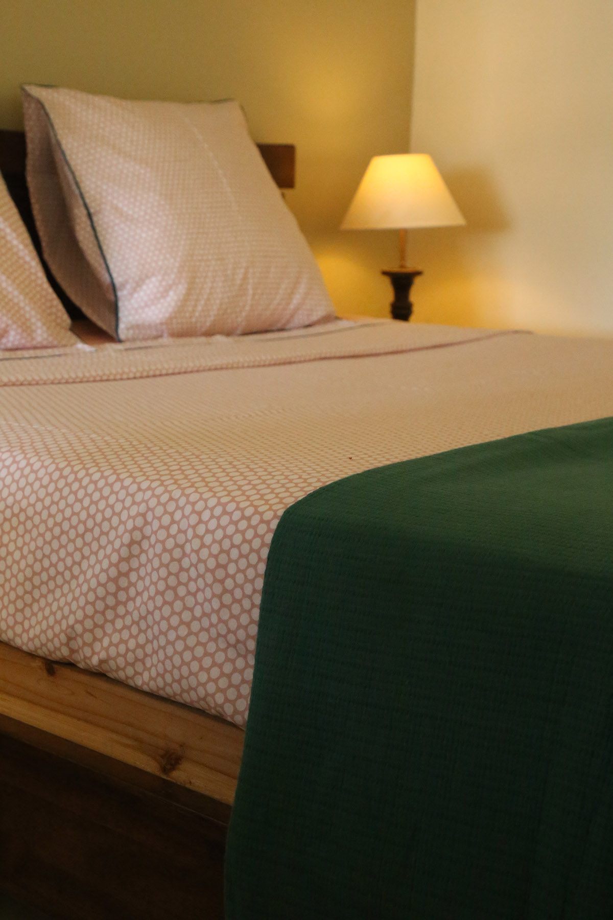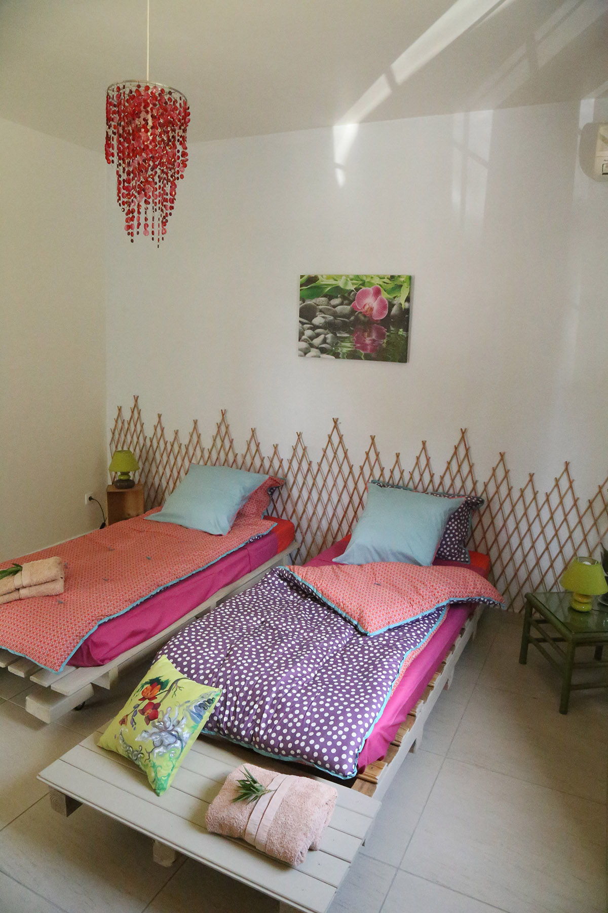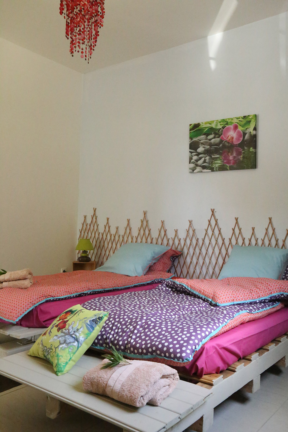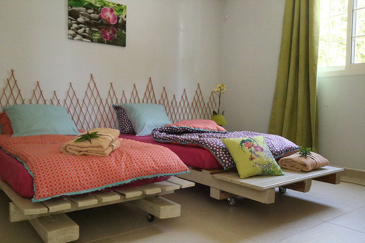 Notre gîte peut accueillir jusqu'à 8 personnes. Il est constitué de 3 chambres, d'une salle de bain et d'un spa extérieur.